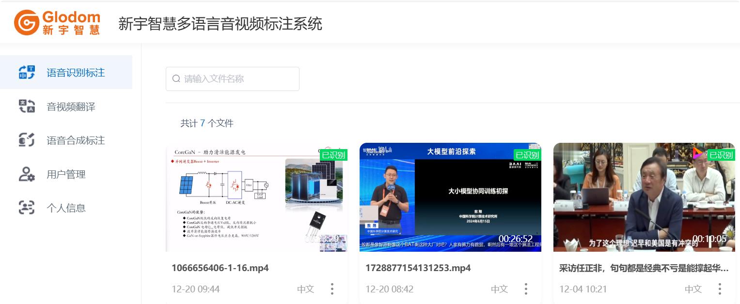 新宇智慧自主研發(fā)的多模態(tài)語音標(biāo)注平臺,集成語音識別標(biāo)注、音視頻翻譯、語音合成標(biāo)注等核心模塊,全面支持文本譯后編輯與多語言處理,為AI語音模型訓(xùn)練提供高精度、高效率的數(shù)據(jù)服務(wù)解決方案。