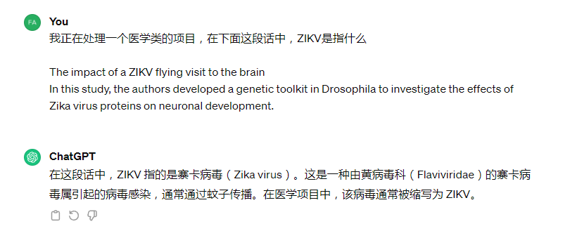 例2:當(dāng)我遇到一些不熟悉的縮略語時,可以向AI工具問詢縮略詞具體指代的含義,然后進(jìn)行驗證,可以節(jié)約大量時間。如下列截圖所示: